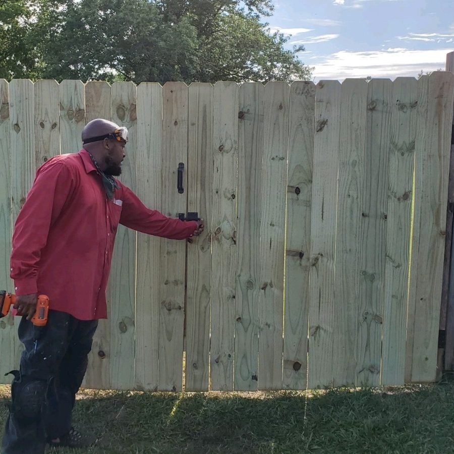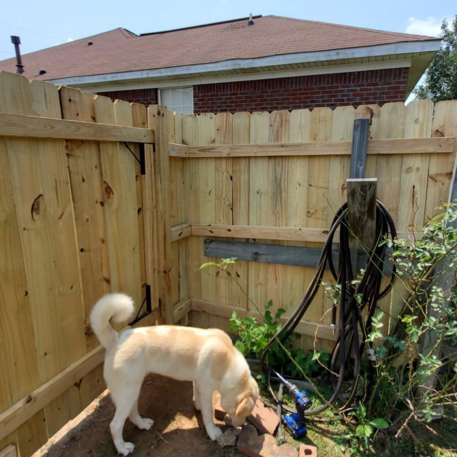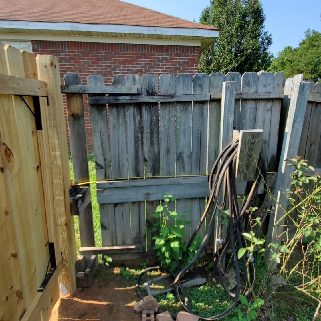 The customer needed work done on both sides of the house. This side needed a double door gate and old sections completely replaced. The other side of the house had a single door gate and was nestled in with hedges and a flower garden. What are your needs?